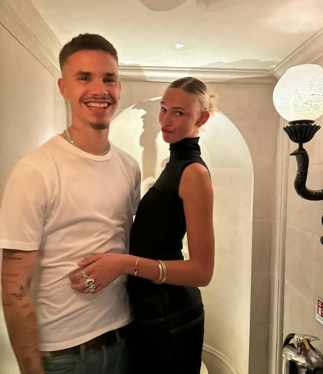 贝克汉姆二儿子和他的女朋友合照,虽然他才21岁,但看着好成熟,也没有爸爸帅气。