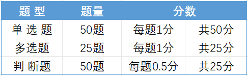 心理咨询师考试题型:共有125道题目,考试题型分别为单选题 50 题,每题 1 分,满分 50 分;多选题 25 题,每题 1 分,满分 25 分;判断题50 道,每题 0.5 分,满分 15 分。