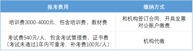 考试费用:540元/人,包含教材费、考试管理费、证书费等。首次考试未通过者,可在下一期进行补考,补考费100元。