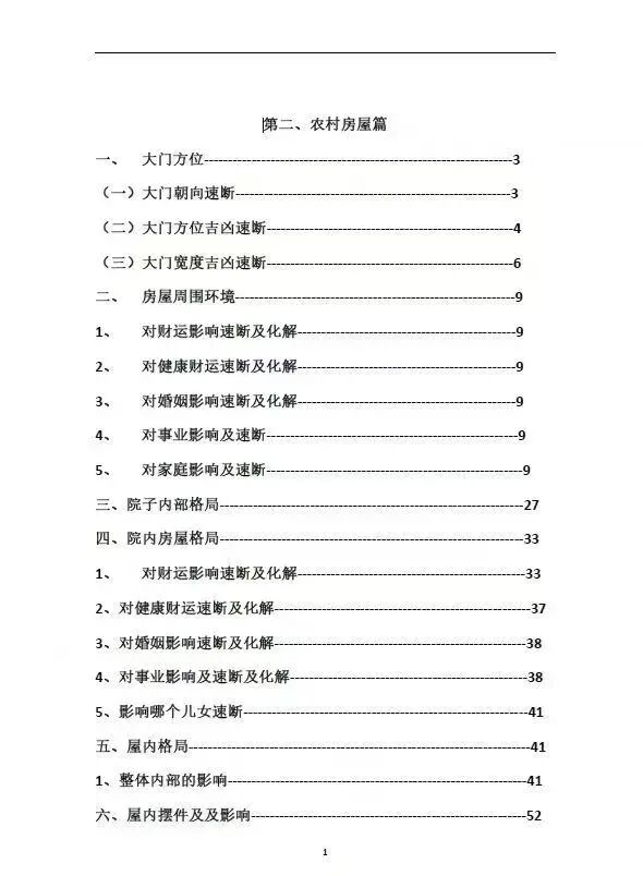 其中《阳宅城市环境学》足足 198 页,详解现代楼房高层、小区格局、楼距巷冲、天桥路冲、边角煞、楼体形煞、采光气场、楼层吉凶、前后左右环境影响,贴合当代城市人居特点,针对性解决楼房常见风水问题。《阳宅农村环境学》143 页篇幅,专论乡村自建房、院落格局、大门朝向、菜园畜舍、池塘沟渠、山林路道、田间砂水,贴合农村造宅实际,古法口诀与实地断法兼备。