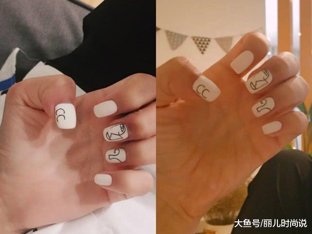 以白色作为底色,磨砂的质地,上面描绘出来的人的五官,颇有艺术气息的,这么一款美甲不仅充满小清新,更显高级感,大气简约又时髦,手指纤长的女生去换上特好看的。