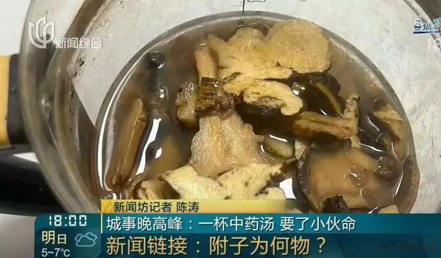 医生检查后发现,这哪是什么普通药材,分明是含有剧毒乌头碱的中药附子!上海市东医院重症医学科副主任叶旭辉说,夏先生不仅超量服用,而且根本就没煮,就拿热水泡了泡,这才导致急性中毒。