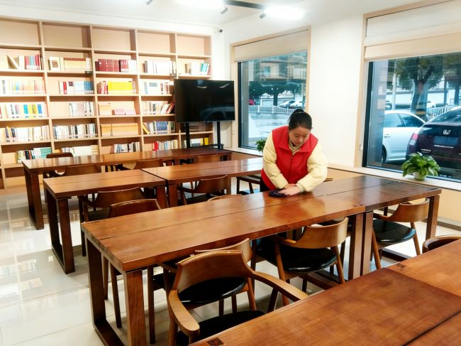 图为:烟草志愿者日常在“筑香书屋”打扫卫生