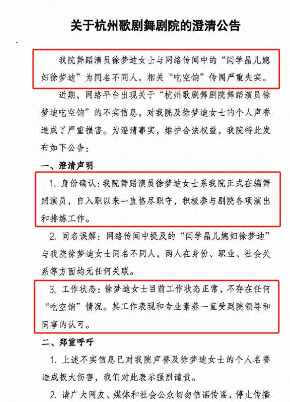 这一查发现杭州歌舞剧院编制名单里也有个叫徐梦迪的,大家马上就炸了,说闫学晶的儿媳吃空饷拿工资不干活。