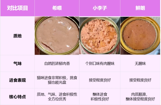测评结果:希喂:★★★★★| 小李子:★★★★☆| 鲜朗:★★★★☆