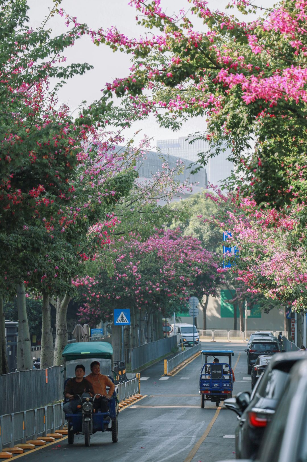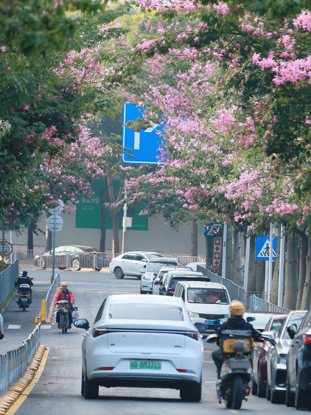 深圳的冬天 连马路都这么浪漫 席慕容诗里那棵开花🌸的树,深圳给你种满全城~ 霸道总裁还得是咱深总❗️ 地址🌸:深圳市龙华区望辉路 交通🚉:4号线白石龙地铁站A口步行700米 我和我闺蜜是打车🚖去的,打车定位“望辉路” 非常Nice的体验 上车扫后座的二维🐎,或者直接在曹操出行艾pp,或小程序,阔以直接调整车内的温度,音乐🎵 还能连车内Wifi ❗️ 不得不说曹操出行这波真的赢麻了 🌸 我们是周六去的,车很少,人也很少, 很适合拍照📷 有一部分花垂的很低,很适合拍人像 公主请码住[暗中观察R]