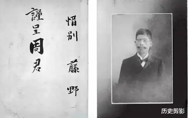 鲁迅离开仙台时,藤野先生以照片相赠,并在背后题写“惜别”