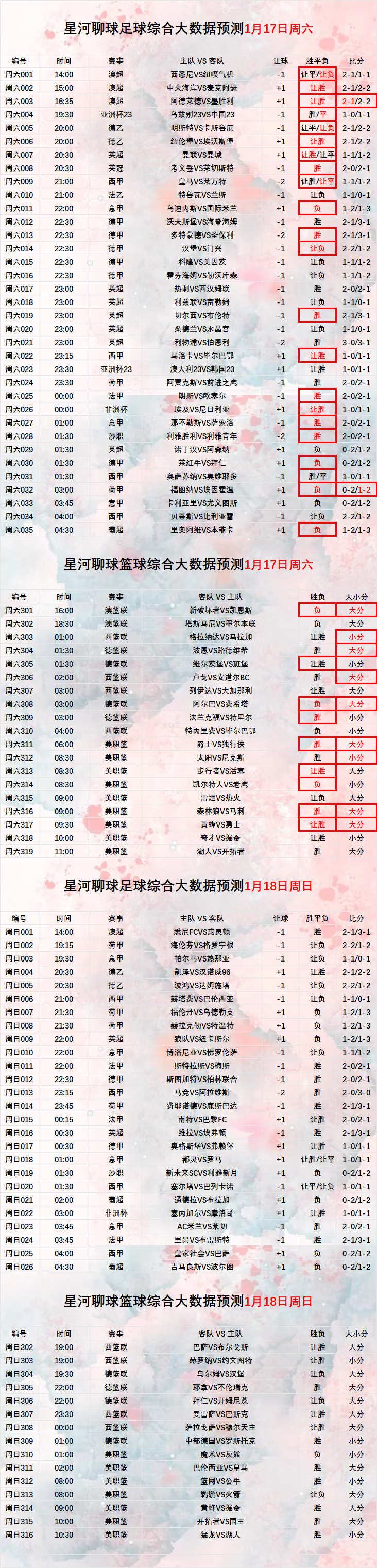 2026年1月18日 【星河聊球足球篮球扫盘】