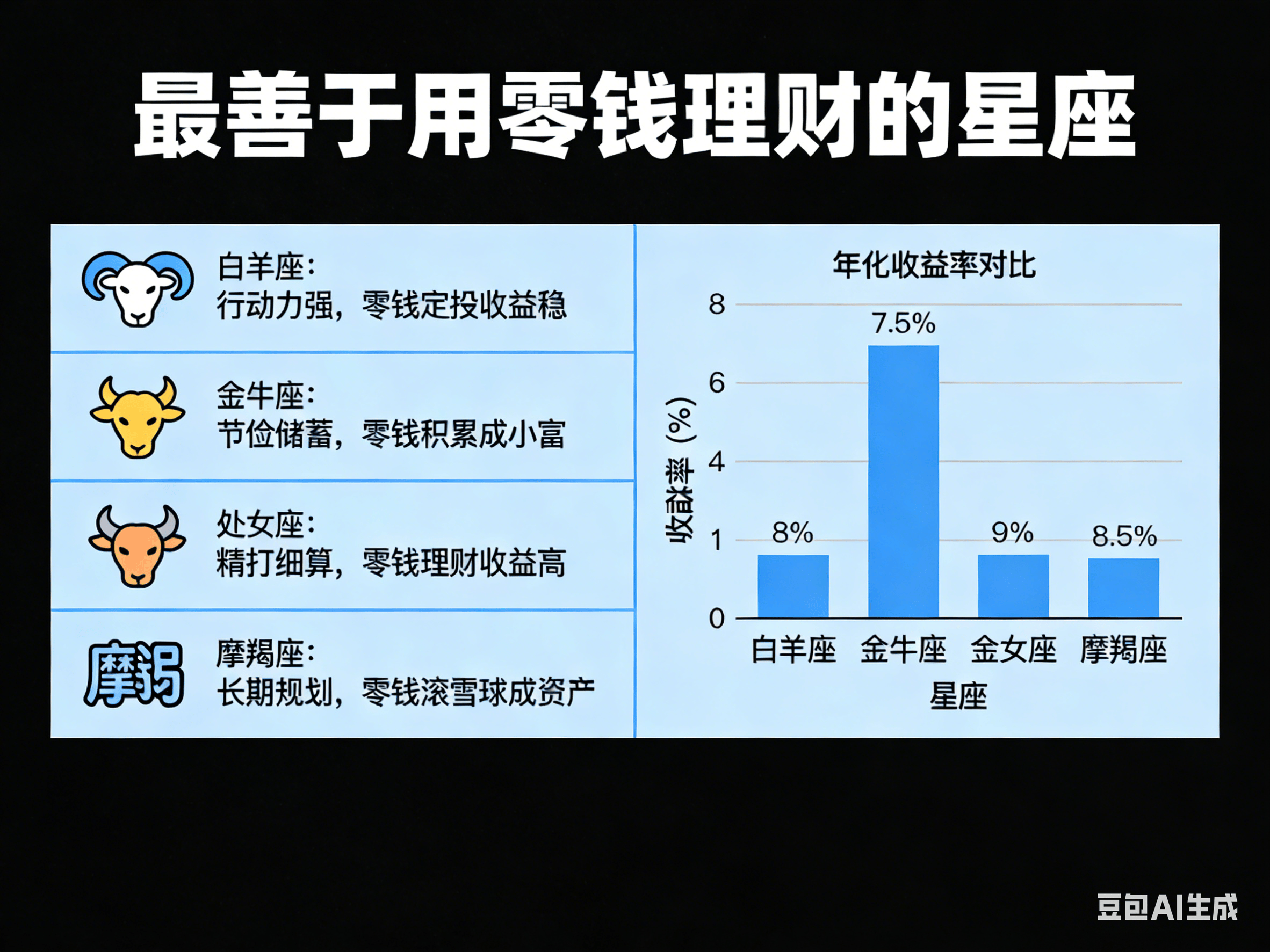 摩羯座习惯用长远的眼光看问题,对待零钱也是如此。在他们眼中,零钱不只是当下的小资产,更是未来投资的“种子”。