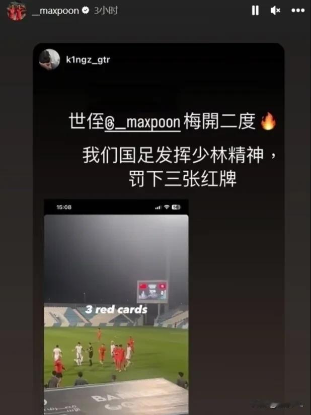 国足丢人丢大了,被家里的小弟无情嘲讽。国足1-2不敌中国香港,输球输人,全场比赛包括两名球员和一名助教共计吃到了3张红牌。赛后,港队进球功臣潘沛轩通过个人社媒发文:“我们国足发挥少林精神,罚下三张红牌”,疑似暗讽国足在场上的暴力动作。