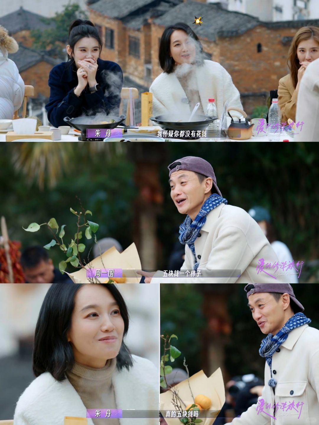 📺爱的修学旅行 朱丹连柿子花钱买的都有点不信 树枝是捡的,真是秒懂 但是周一围这个真的好浪漫啊