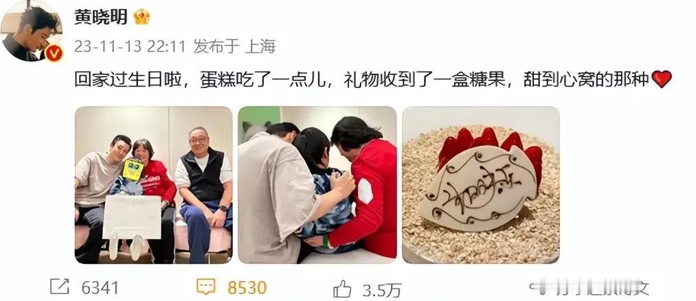 黄晓明和杨颖离婚仅一年多,生活却天差地别,看了让人莫名心酸 最近,黄晓明在网络上分享了一家人在一起过生日的合影画面,让人感觉好幸福!好温馨。 我们从晒出的照片中可以看到,儿子小海绵还亲自给黄晓明写了生日祝福,爸爸生日快乐。而作为父亲的黄晓明看到后心里简直乐开花了,黄晓明还说到蛋糕吃了一些,生日礼物是收到了一盒糖果,虽然不是什么名贵的礼物,但是甜到心窝的那种。从黄晓明晒出的照片和字里行间,我们也能感受到当时他那种无比幸福的心情。 黄晓明自从与杨颖离婚之后,黄晓明的人气和事业都在节节攀升,之前被称为油腻大叔,现在也已经成功去油了。现如今的黄晓明再次成为了娱乐圈的顶流明星,影视剧,各种代言接到手软。 再看看现在的杨颖却是另一副模样,她与黄晓明离婚后事业大不如前,资源人气大跌,无论是影视剧还是代言,都下街了好几个档次。尤其是最近的疯马秀风波之后。杨颖线下的海报也全都被撤下。综艺节目跑男也没有了杨颖的身影。可以说她的事业彻底的跌入谷底。杨颖也是没想到,看了疯马秀,却断送了自己的演艺生涯。 如果杨颖不离开黄晓明,如果他不去看疯马秀表演,估计杨颖也不会有现在的下场。黄晓明与杨颖离婚也不过才一年多,但是现在两人的生活状况却是天差地别,看了让人莫名心酸。
