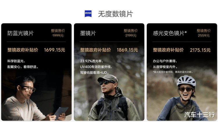 全系标配蔡司高品质镜片,涵盖平光(防蓝光、墨镜、感光变色)、屈光(近视/远视)等多种类型,色彩更饱和通透、暗部细节还原更好。提供两大定制镜片系列(非球面技术、自由环面技术),支持线上上传验光单配镜,最快当天完成配镜并发货。
