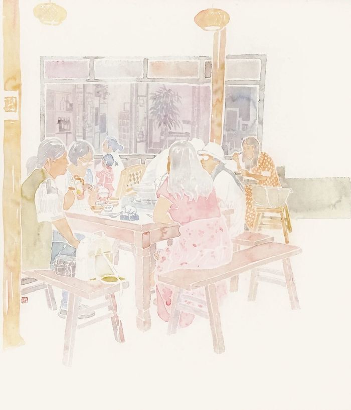 韩潇的探索具有一定的学术启发性。这批来自各地的写生,不仅捕捉了瞬息的光影气息,更完成了从“对景描绘”到“借景筑境”的升华。色彩成为画面叙事的主体,伴随她行走的体验而呈现出不同的色域配置与情绪基调,如《彩云之城》系列明净轻盈,笔意流动;《佛山漫语》以温润紫调映衬岭南文化的深厚多元;《十月流光》则如一卷淡霭晕染的诗笺,用湿润朦胧来表达时间的痕迹。她对色彩的驾驭,显然已超越表象模拟,进入与地理、人文深度共鸣的精神表达。总体说来,这批作品手法新颖、格调清雅、完成度颇高,展现了青年画家在写生语言当代化方面的有效尝试,无疑是该领域近年来一批值得关注的精彩成果。