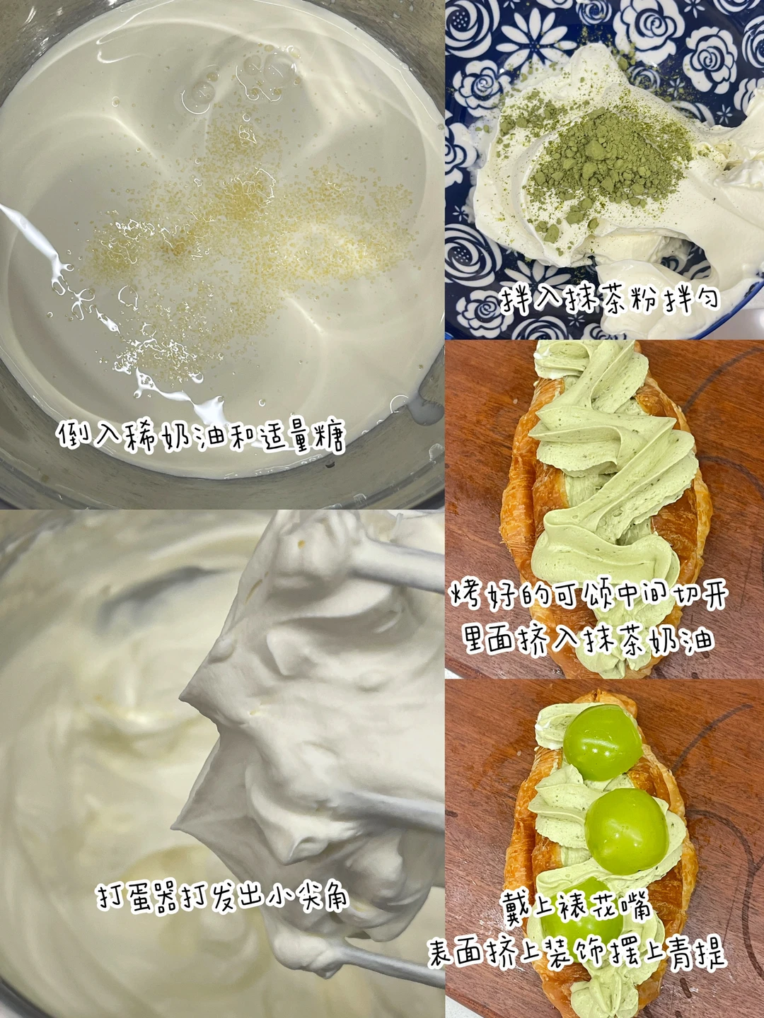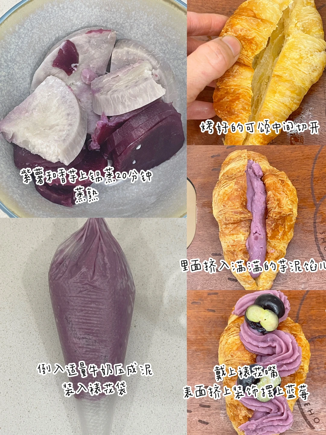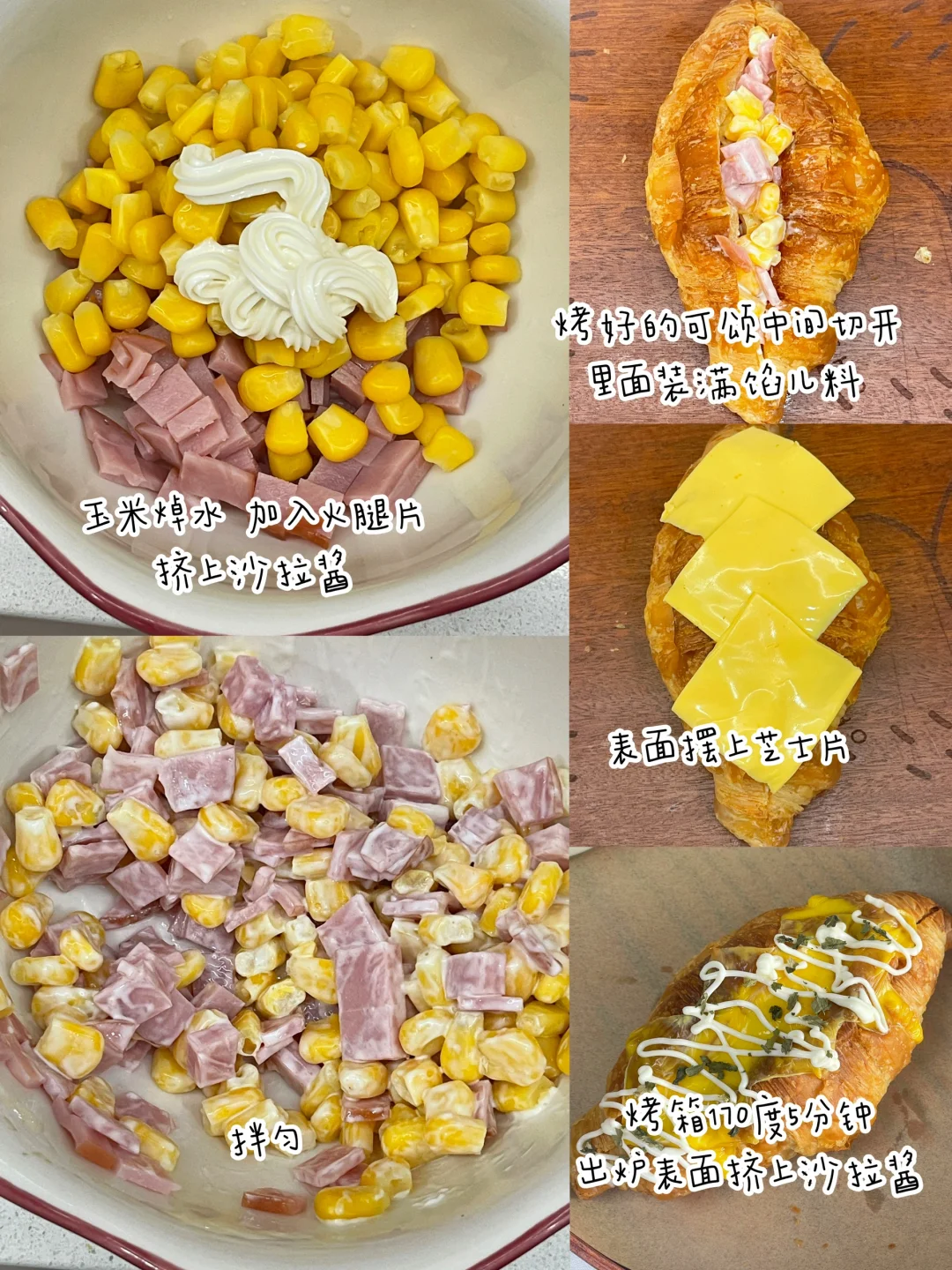 可颂面包搭配做法又来更新了,今天再发6款,好吃到可以开店啦[偷笑R] ✅火腿玉米芝士可颂:可颂、 火腿、玉米、沙拉酱。 ✅奥利奥可颂:可颂、奶油、砂糖、奥利奥饼干碎,奥利奥饼干(装饰) ✅紫薯香芋可颂:可颂、紫薯、香芋、牛奶、蓝莓(装饰) ✅草莓奶油可颂:可颂、奶油、砂糖、草莓(装饰) ✅青提抹茶可颂:可颂、奶油、砂糖、抹茶粉、青提(装饰) ✅牛油果煎蛋可颂:可颂、牛油果、煎蛋、芝士片。