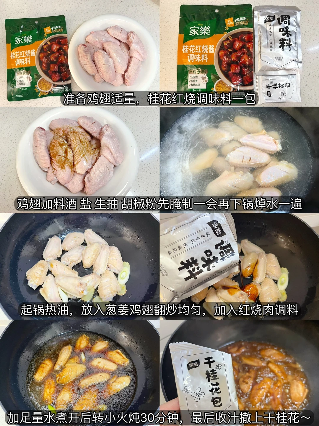 [庆祝R]小朋友大多爱吃鸡翅,再做个红烧鸡翅,有了家乐不用炒糖色,简简单单一撕一倒,出锅再撒上料包里带的干桂花,又好吃又好看~换成红烧肉红烧鱼也都不在话下~