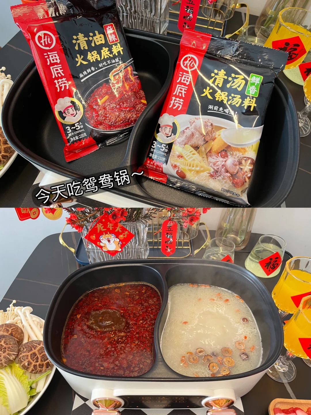 🍲锅底:麻辣清油➕鲜香清汤