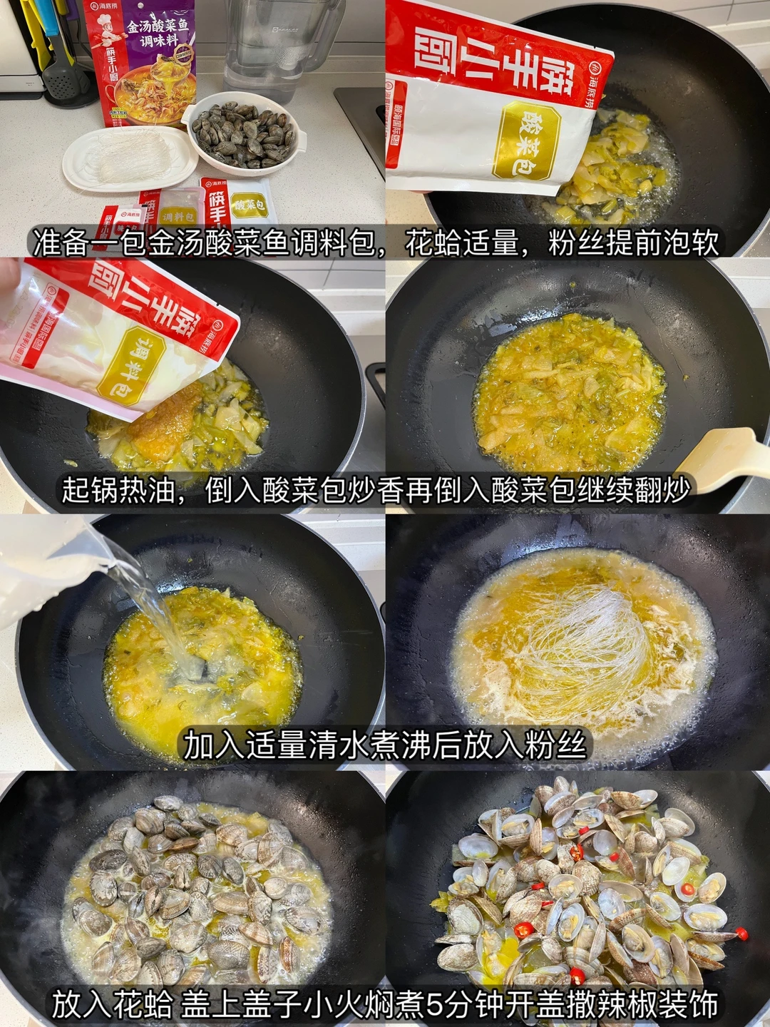 快手菜:酸汤粉丝花甲