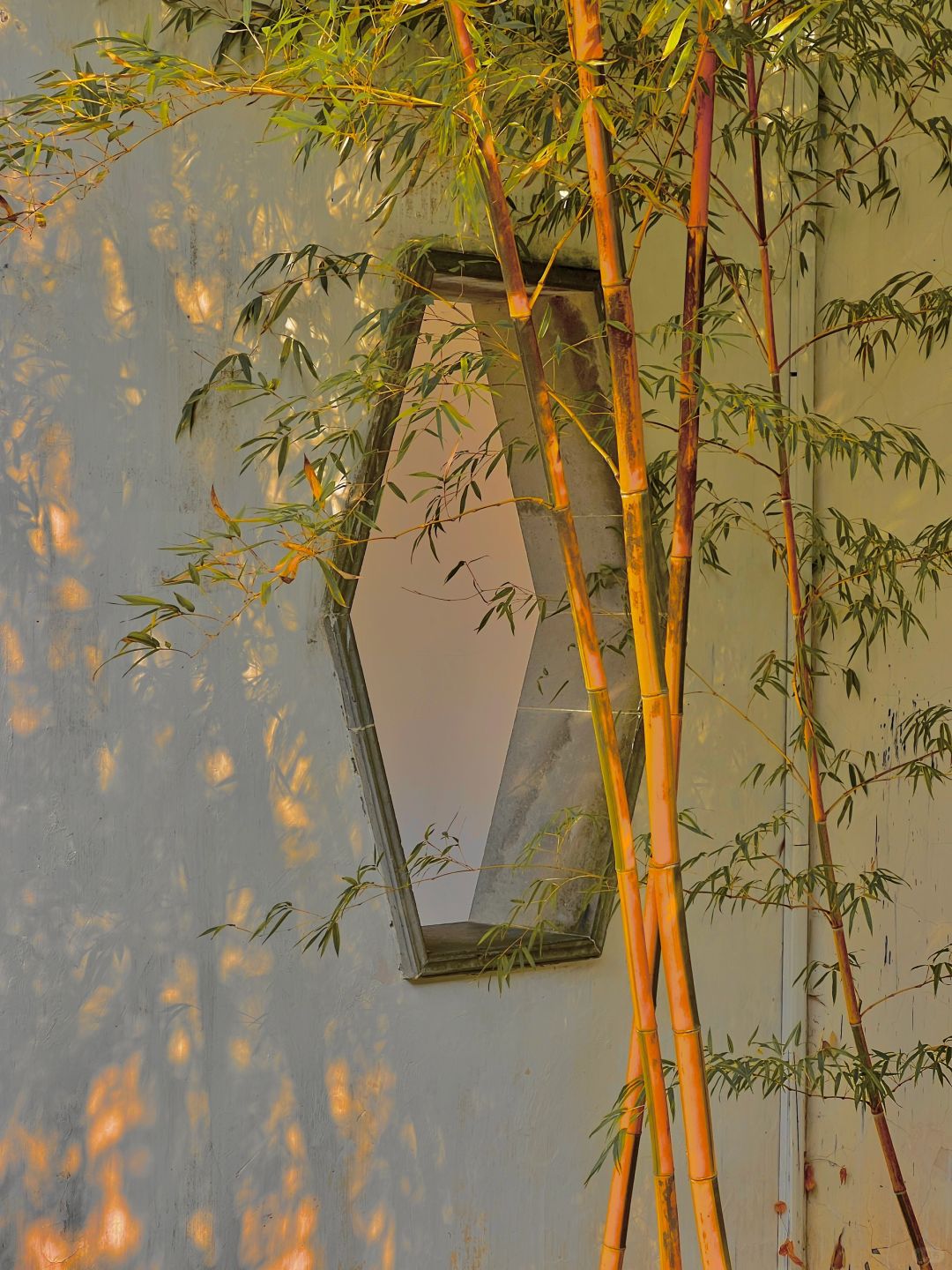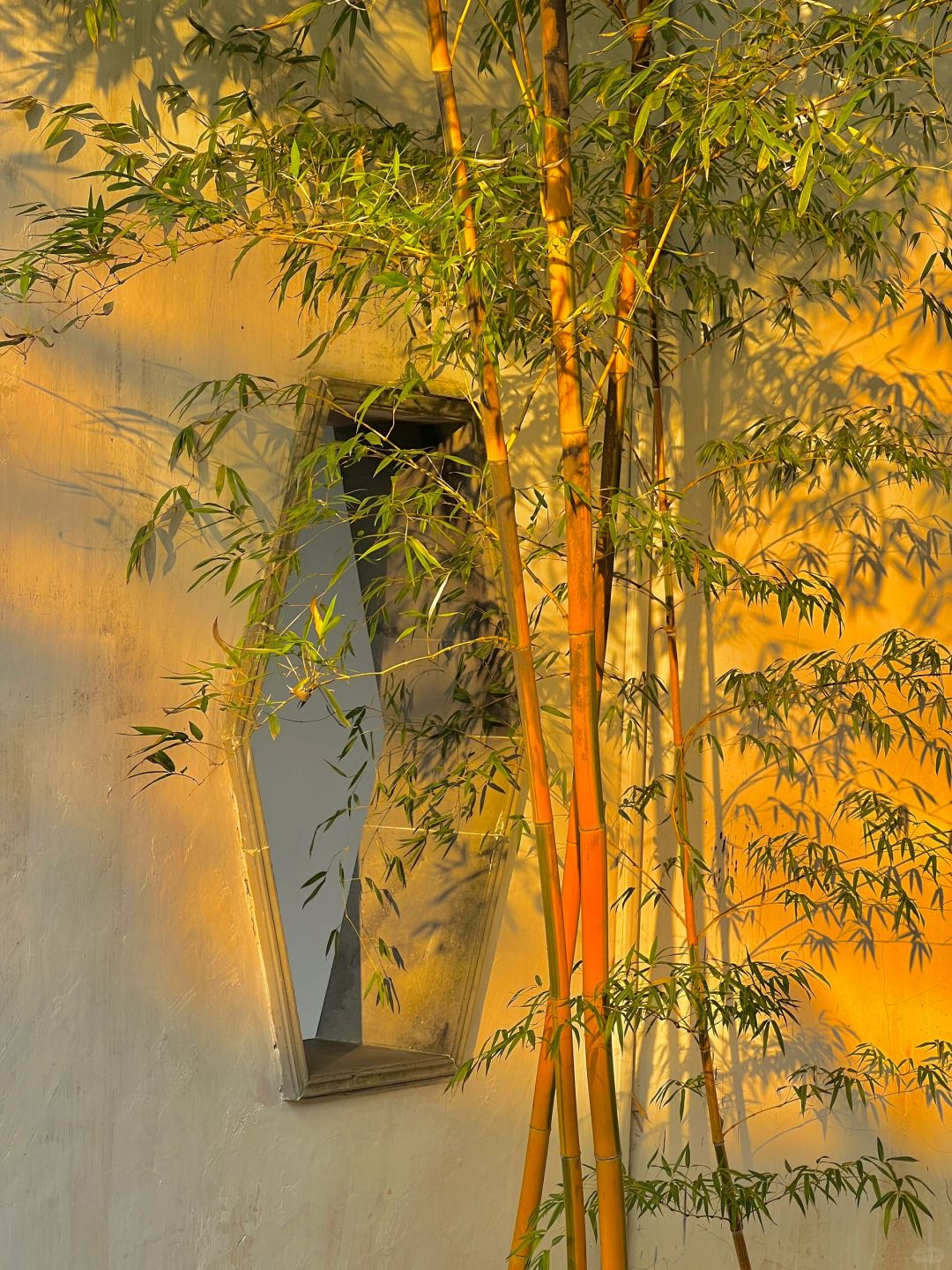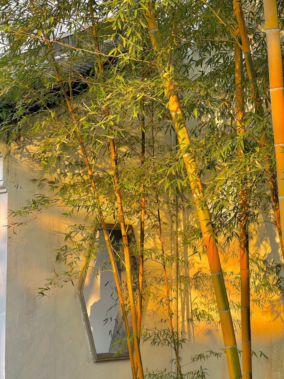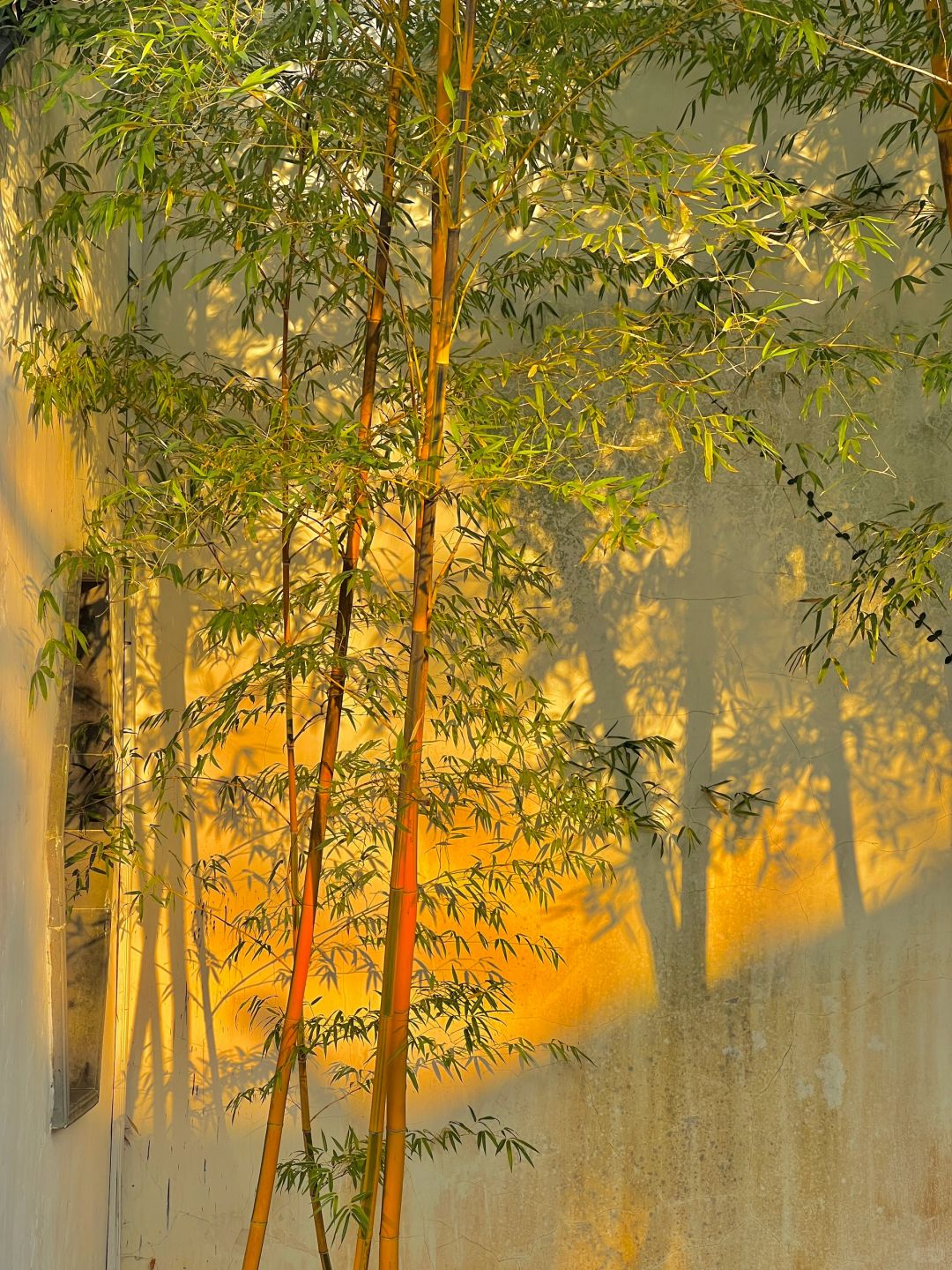 这就是live图的意义✨园林竹影🎋浮光跃金 看到园林中的竹子在夕阳下摇曳🎋 阳光透过竹叶洒在墙上 斑驳的竹影间浮光跃金✨ 瞬间明白了