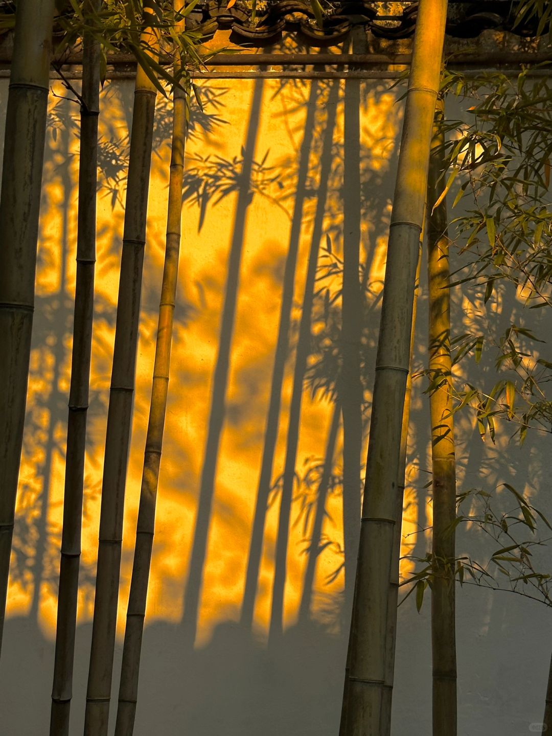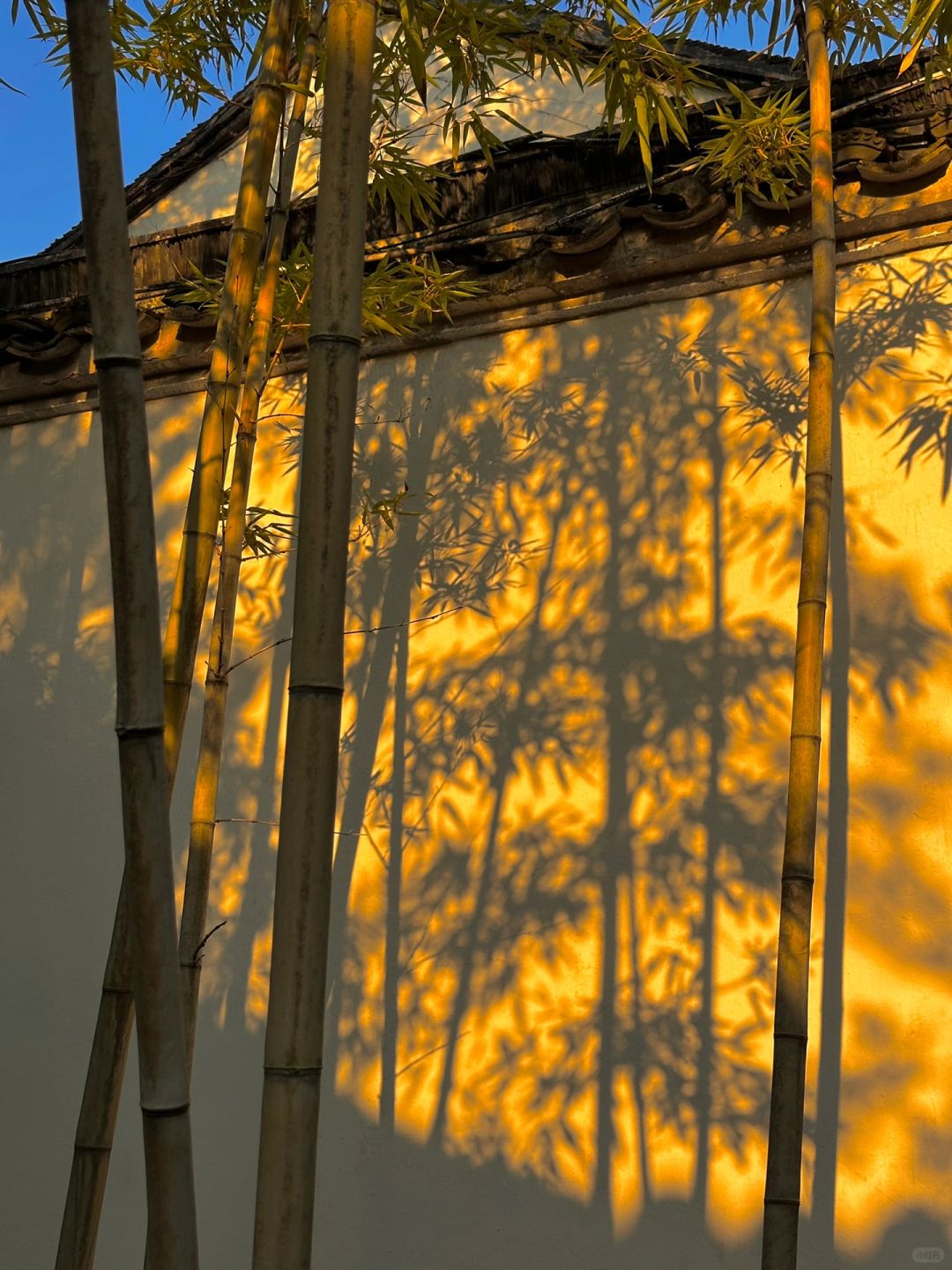苏州留园|以墙为纸,以光为笔🎋 - “修竹有高节,清风无俗声” - 4点阳光在古朴的墙上烫下一块金 微风中竹影交错,在天然的画布上跳跃✨ 突然明白了古人为什么喜欢竹子…… - 📍:留园