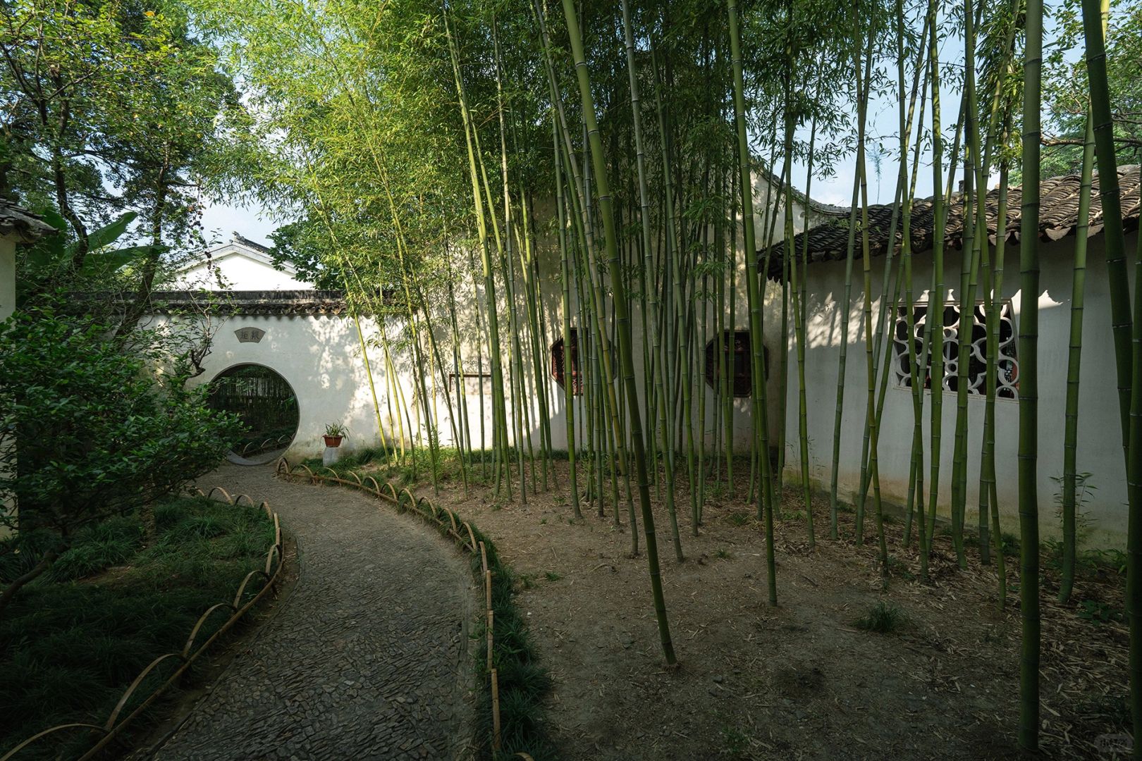 可若全都是茂密的大树,未免单调;所以沧浪亭又在古树周边间之以竹,形成了视觉上高矮的错落。