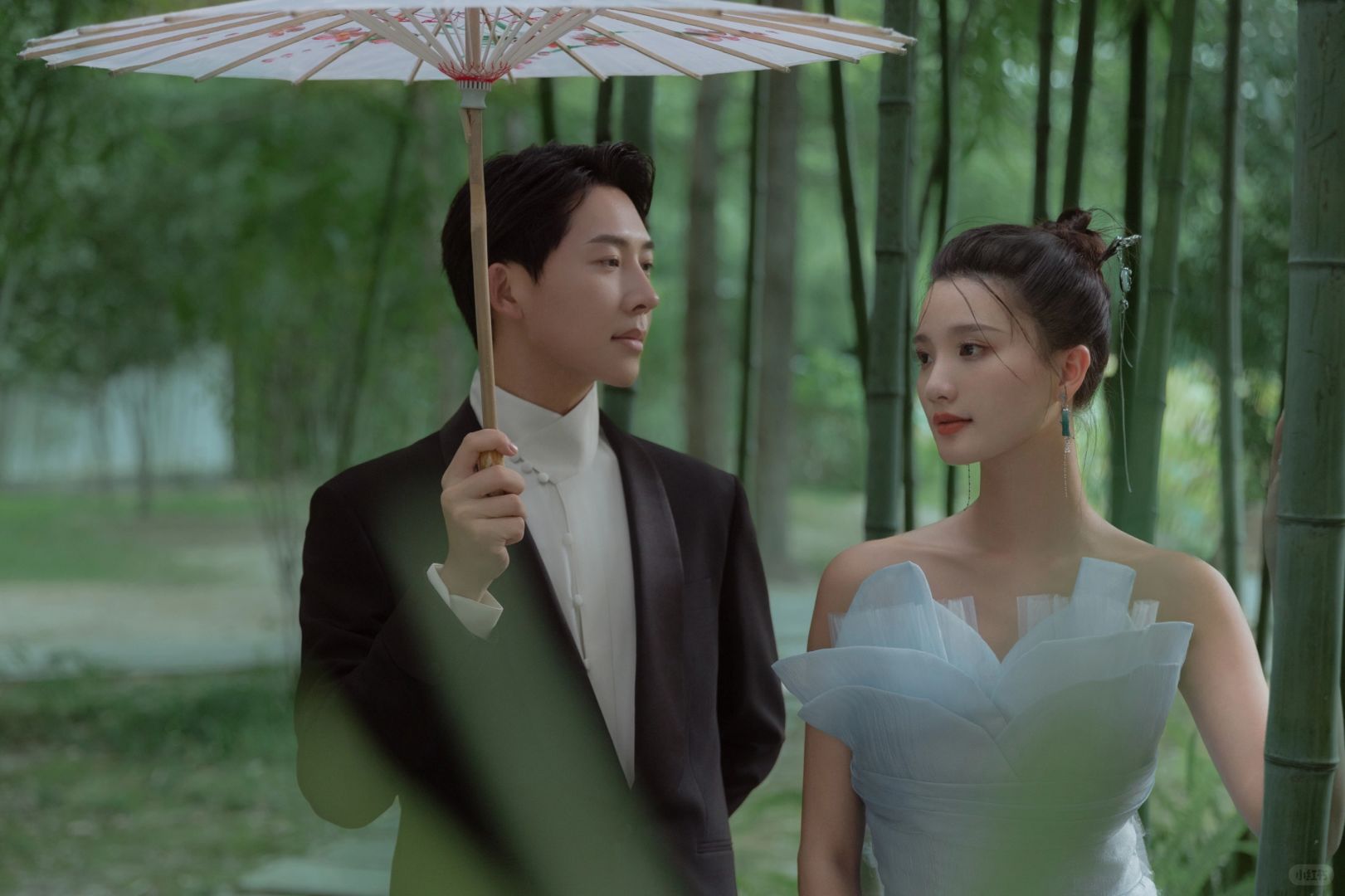 🎋我的新中式竹影婚纱照 🎋美到需要屏住呼吸看 • 木影飘絮风拂耳🌊 竹林幽深 行水慢慢 身处其中仿佛辰光都慢了下来 ⛰二人四目相望 含蓄深情已可窥见一二