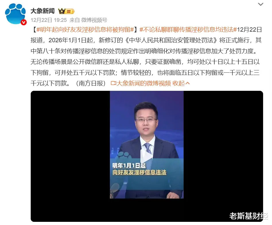 即使是私人聊天中发送不雅照片或视频,一旦被举报查实,从2026年1月1日起也会受到法律制裁。