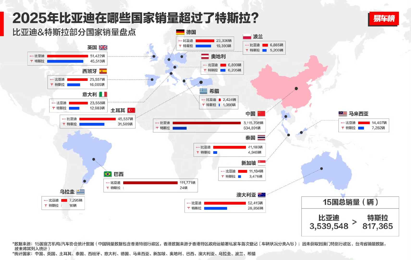 2025年,全球新能源汽车产业迎来历史性转折。长期在新能源汽车总销量上保持第一的比亚迪,以全年225.7万辆的纯电动汽车销量,首次超越特斯拉,新能源汽车行业新标杆登顶全球榜首。这一历史性超越,其背后是中国汽车品牌凭借体系化创新与战略性全球化,在全球汽车产业核心赛道实现引领的标志性事件。