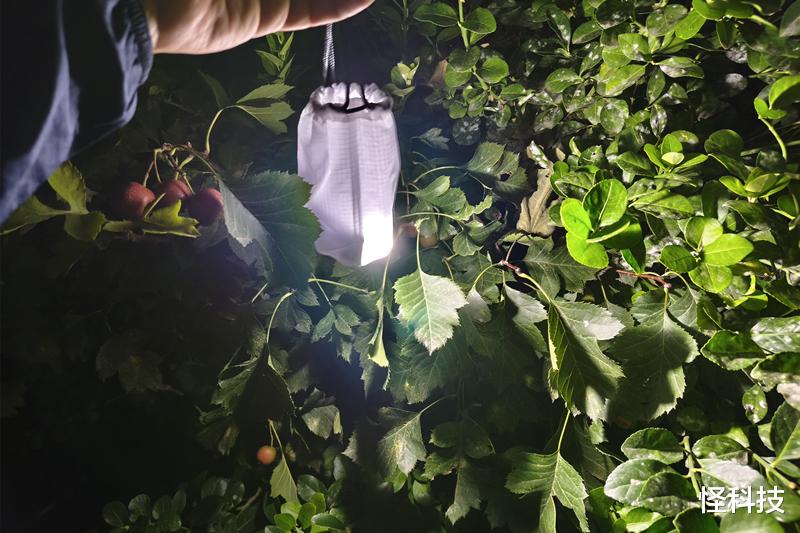 除了帽夹和头带配件,米家多功能户外灯的收纳袋也挺有意思,除了收纳功能以外,把点亮的主机放入其中,半透明的收纳袋起到柔光作用,摇身一变就成为了一盏露营灯,给天幕或营帐提供稳定柔和的光源。