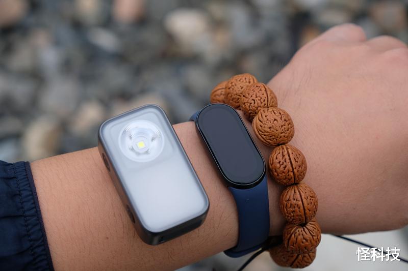 先看外观,米家多功能户外灯57*32*23.4(mm)的机身非常小巧,仅比我的小米手环大一圈,与我的C300拇指相机大小相当,体积上优势大大提升的便携性,放在口袋里节约空间。