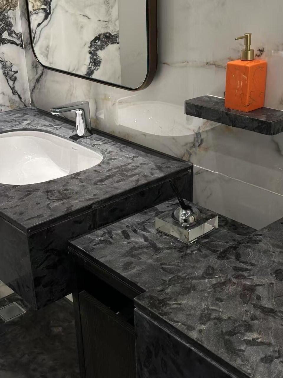 光面安哥拉黑适合大堂墙面干挂,皮革面更适合室外台阶、坡道、水景边沿。两者混用时,建议光面留3mm缝,皮革面留5mm缝,避免热胀冷缩挤压变形。