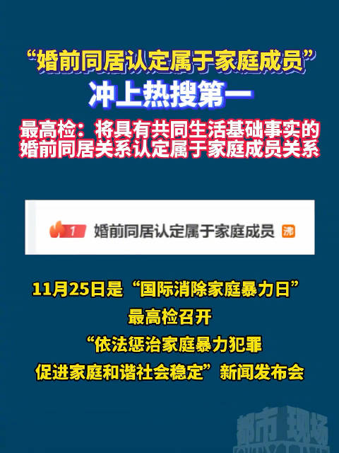 可当我们陪她报警时,对方却以“情侣吵架”为由轻描淡写,因为没领证,连家暴告诫书都难开。11月25日,“婚前同居认定属于家庭成员”的热搜弹出时,我第一时间想起小敏的眼泪。