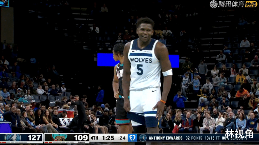 第二节开始,森林狼一波7-0的攻击波,分差瞬间扩大16分,打停了灰熊。