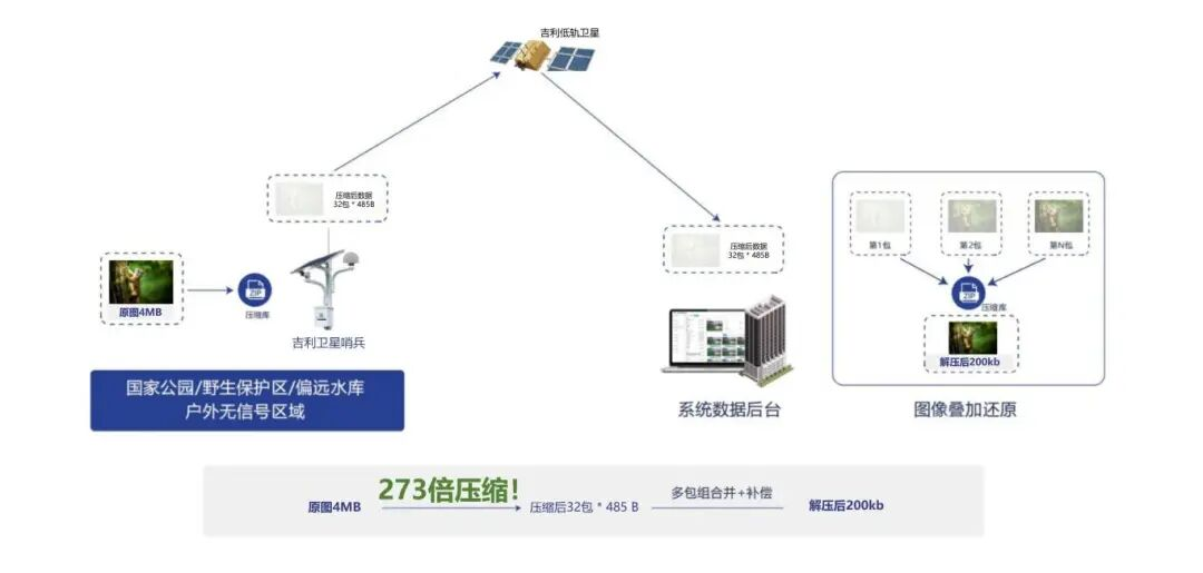 压缩后的分包数据通过低轨卫星物联网发送至地面后端平台,大幅降低对卫星带宽的占用,节约传输成本;