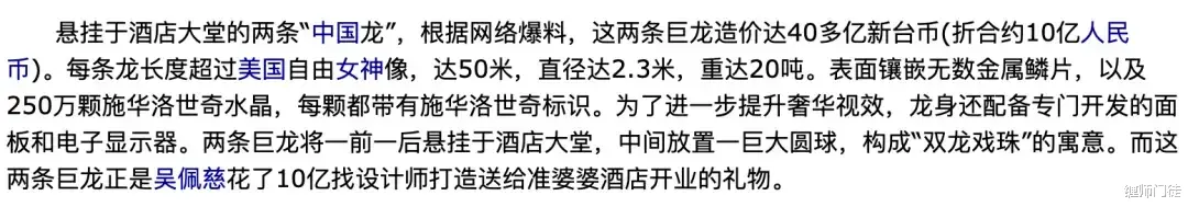 吴佩慈耗资48亿新台币打造的巨型施华洛世奇水晶龙送给婆婆当献礼。