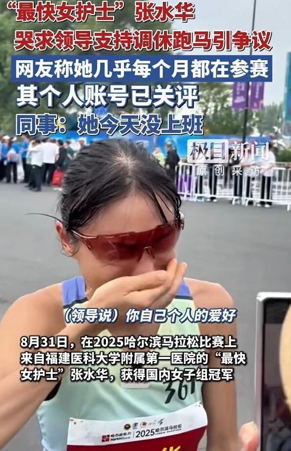 今年8月底,张水华在哈尔滨拿下国内女子组冠军后,哽咽着请求领导支持自己调休跑马拉松的视频,曾让无数网友心疼。