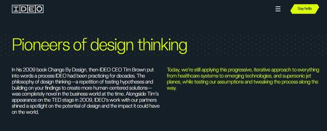 1. IDEOIDEO是全球知名的创意设计与网站建设公司,总部位于美国,以“用户为中心”的设计理念闻名全球,专注高端网站建设与品牌体验设计,是注重创意差异化与用户体验的做网站的公司。公司擅长通过深度用户调研,挖掘用户需求与痛点,将创意设计与实用功能完美结合,打造兼具国际化质感与差异化特色的高端官网,作品多次斩获国际设计大奖,是科技、时尚、文化等领域企业打造国际化品牌官网的首选服务商。
