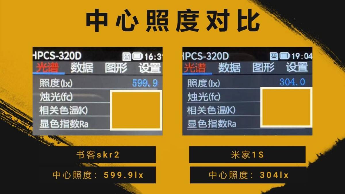 米家屏幕挂灯1s好用吗?这两款屏幕挂灯的中心照度反映的是它们照射在桌面的情况,书客skr2的中心照度是599.9lx,属于比较合理的数值,光线照射到桌面不会偏亮也不会偏暗,书客skr2采用AOT Pro级非凡光路菱镜控光技术,灯体两侧搭配定制聚光反射片和EyePath专研定向控光黄金角,通过8段不同曲率精密组合,重新规划每一束光的折射路径,使光线精准落在桌面目标区域。同时,中心照度稳定且均匀,确保工作区亮度充足且不刺眼,真正实现了专业级的控光体验。而米家1S的中心照度测试出来是304lx,相对来说是比较偏低,比较适合小面积的桌子使用,因为光照范围没有那么大,光线也会比较暗。