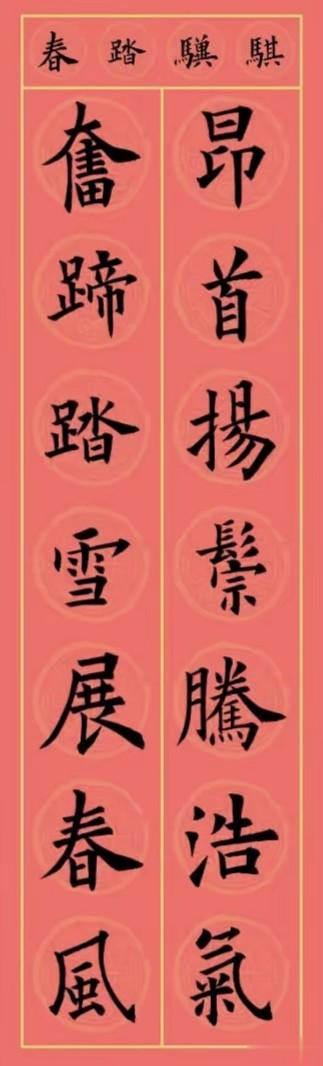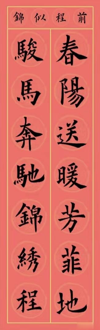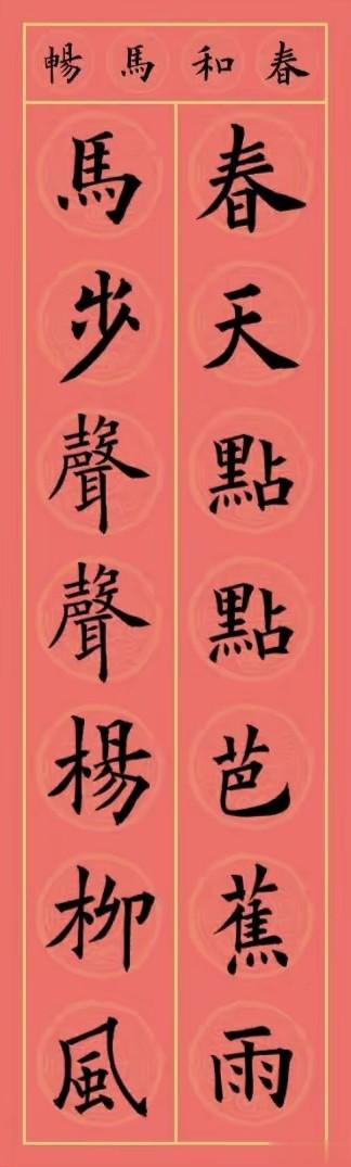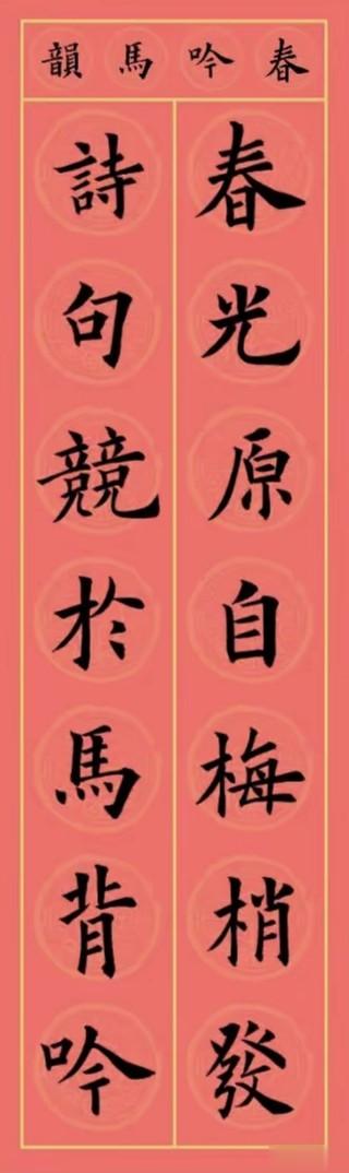 这里,小编再选编了几幅最新的欧体七言马年春联,每联中都带有“马”字,非常应景,在体会春联意境的同时,也可学习欧体楷书的写法,提高自己的书法素养。