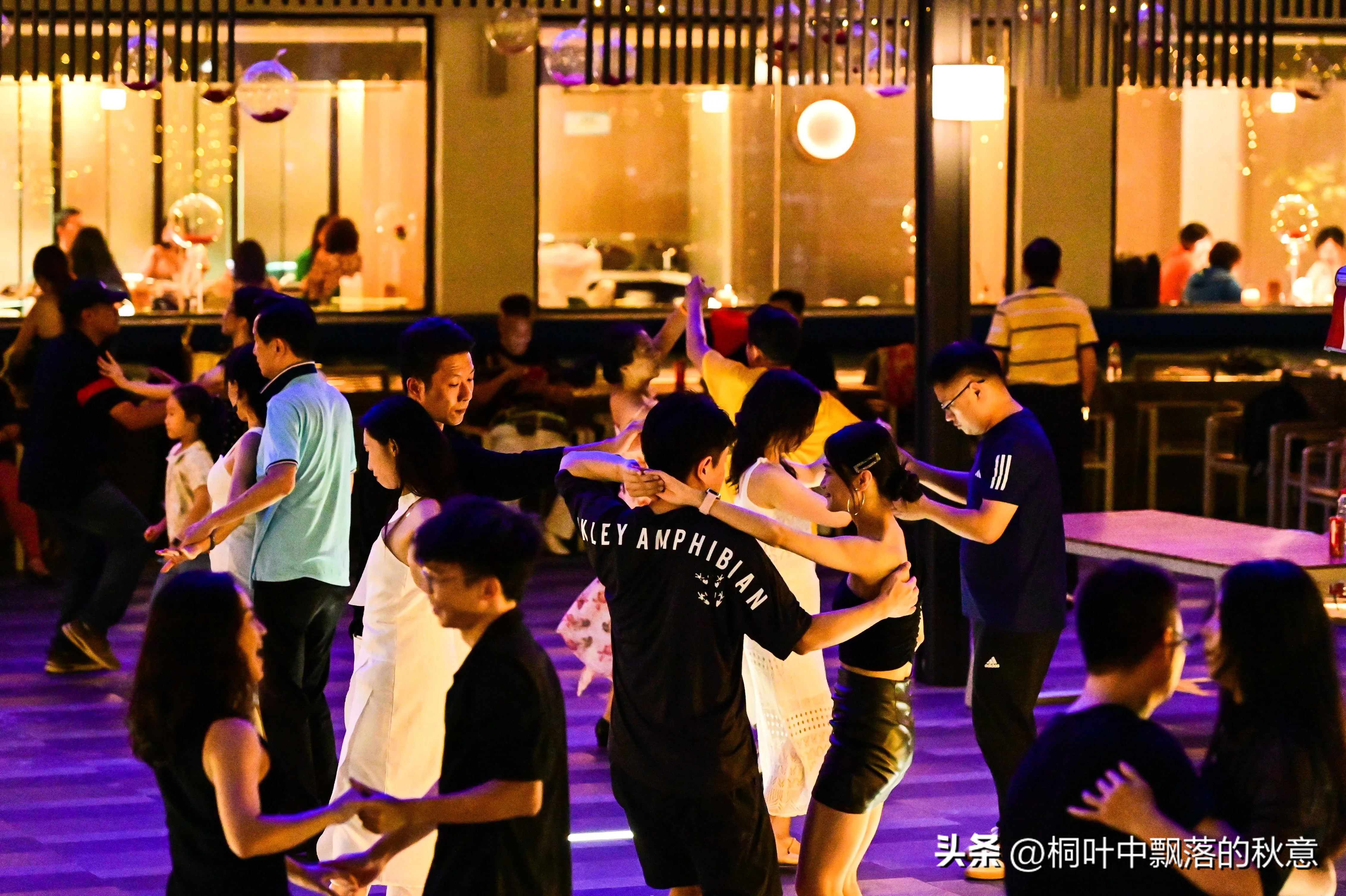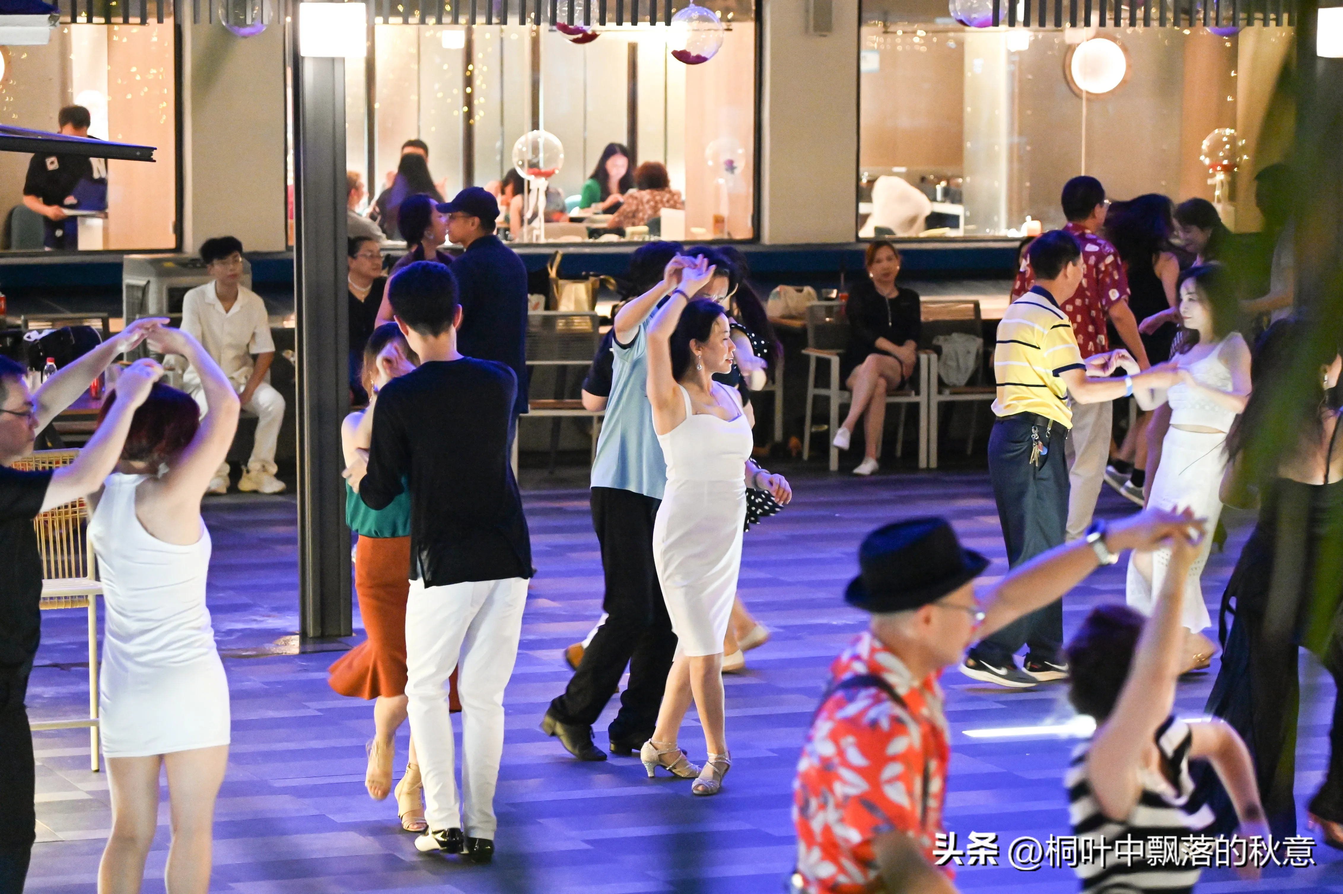 来跳的都是些什么人呢?大多是35到65岁的叔叔阿姨,也有不少外地游客专门跑来体验。大家水平不一样,有的跳得行云流水,有的刚入门,但氛围特别好,跳得好的会主动教新手,聊起舞蹈技巧来没完没了。