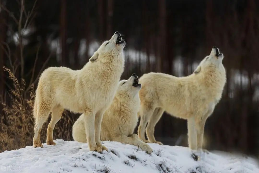 它们的爪子在雪地上留下深深的印记,随时准备发起进攻。
