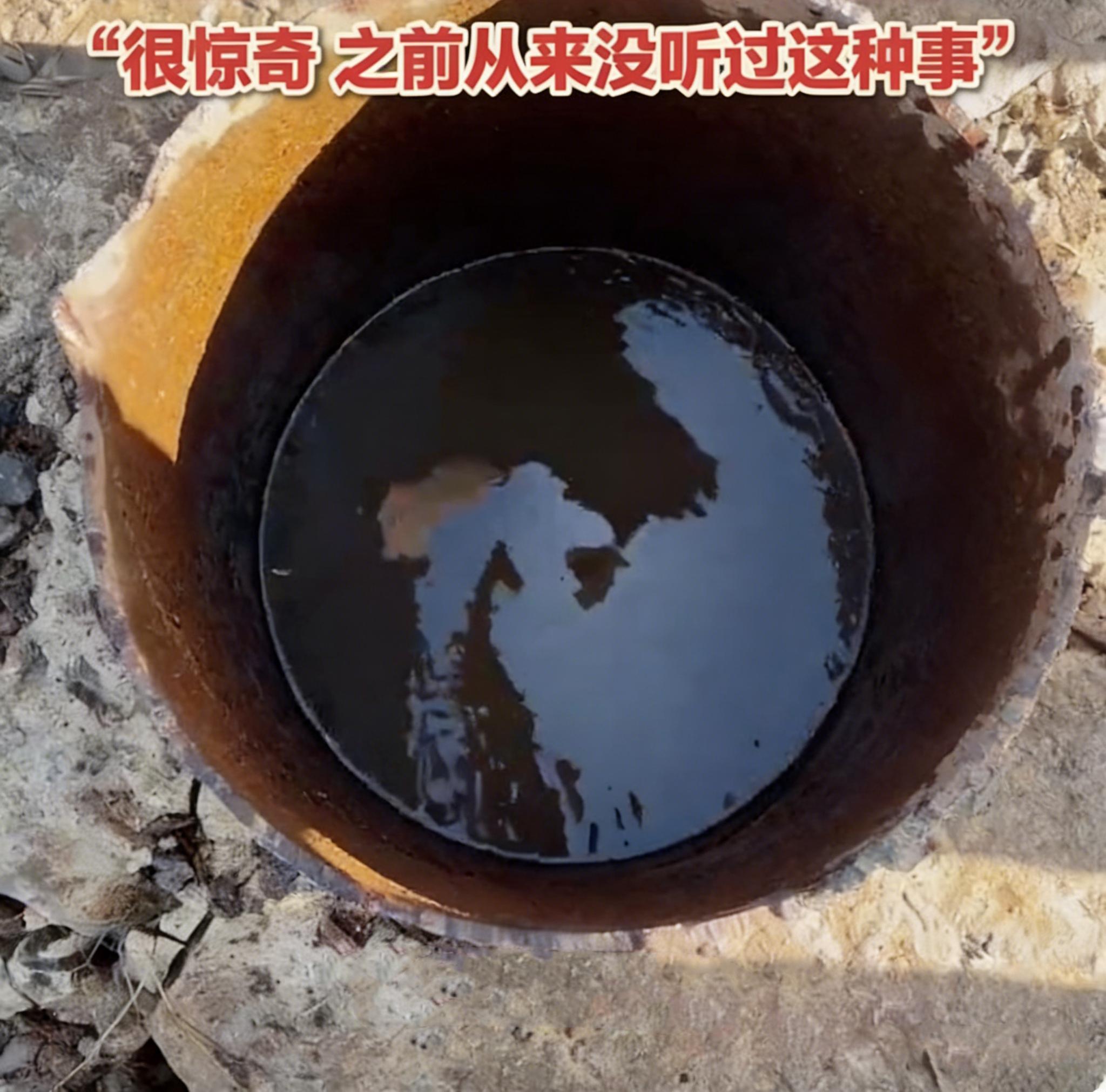 有村民说,这口井打好后就没怎么用过,井口一直盖着石板。那天早上听到井下有咕噜咕噜的响声,掀开一看,热水正往上涌呢,冒着热气。