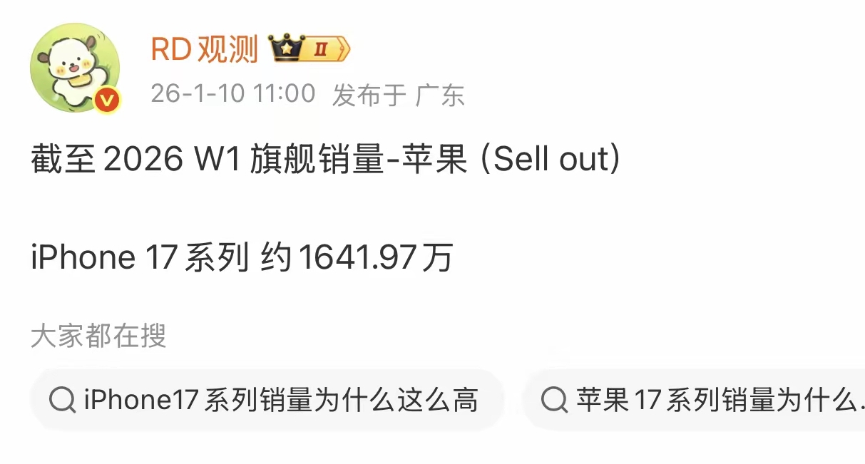 苹果iPhone 17系列交出亮眼销量成绩单,上市六周累计销量突破1642万台,较前代iPhone 16系列同期增长22%,创下近三年旗舰机型同期销量新高。这一数据覆盖全球主要市场,其中大中华区贡献41%份额,成为销量增长核心引擎,强势巩固苹果在6000元以上高端市场的统治地位,即便面临竞品密集上新,仍保持碾压式优势。