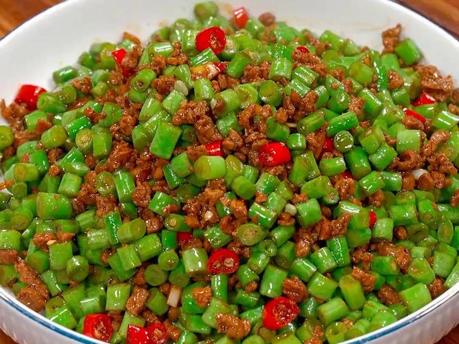 来源:博禾医生主料:豆角 ,蒜苗,干辣椒辅料:盐巴,味精,酱油1.将蒜苗去根洗干净后切段备用;2.干辣椒洗干 净晾干,剪成段备用;3.往锅中倒入适量菜油,等油烧热后下入蒜苗段和干辣椒段煸炒出香味(此时的火候为大火);4.下入豆角与蒜苗段 和辣椒段一起翻炒出香味。注意此时火候改为中火不然容易糊;5.抬离火一次放入盐巴,味精,酱油继续翻炒均匀后即可装盘食用。【肉沫豆角】