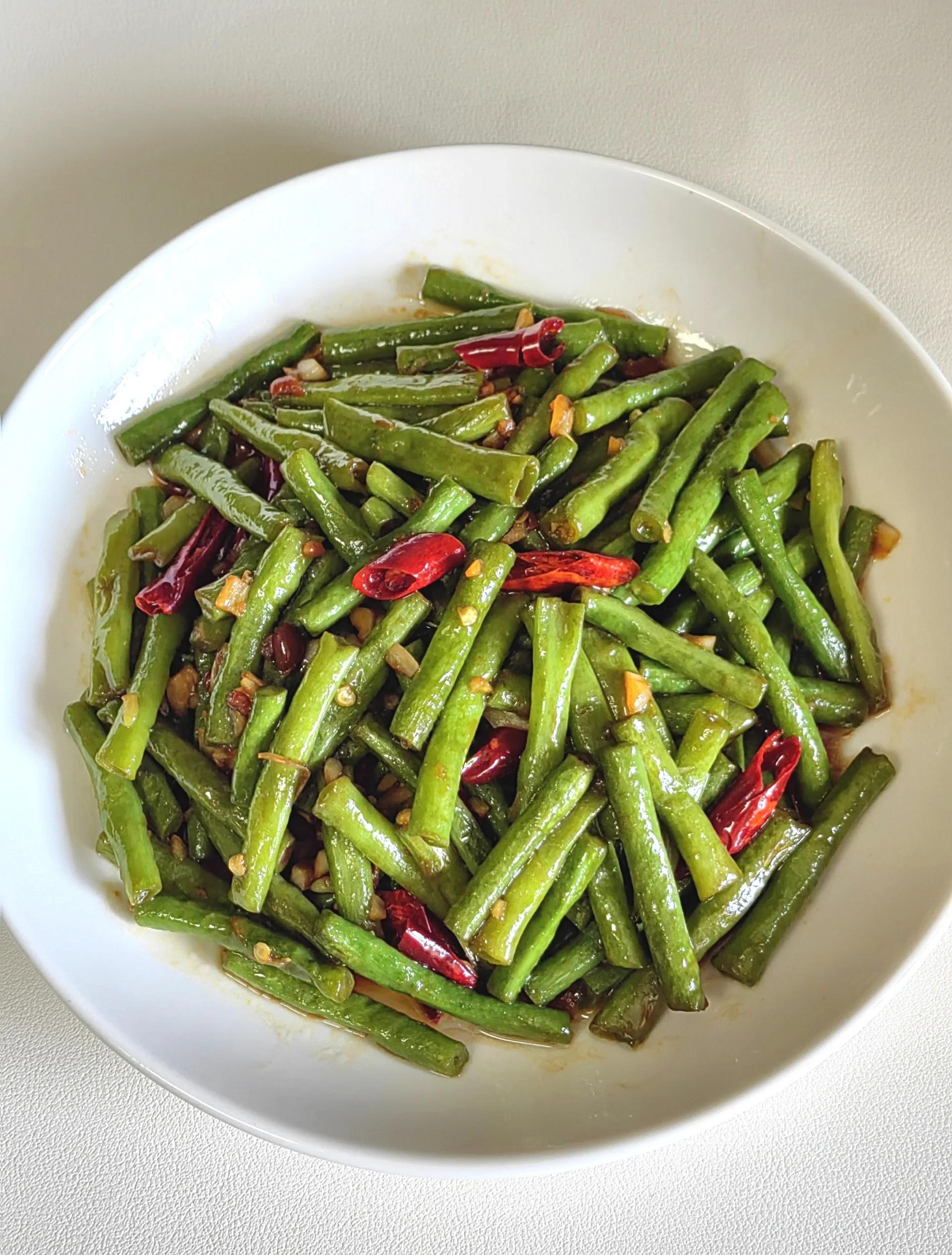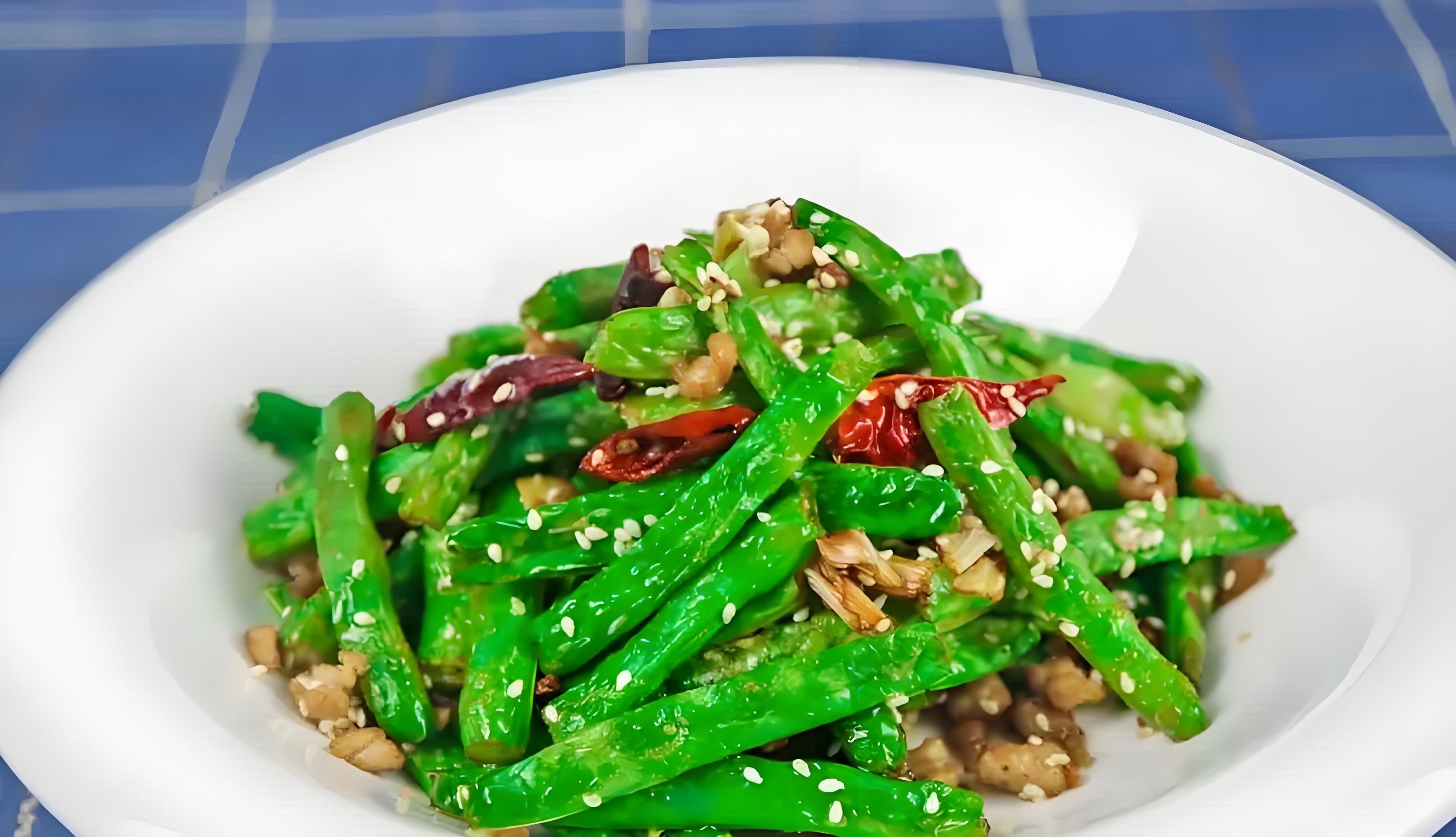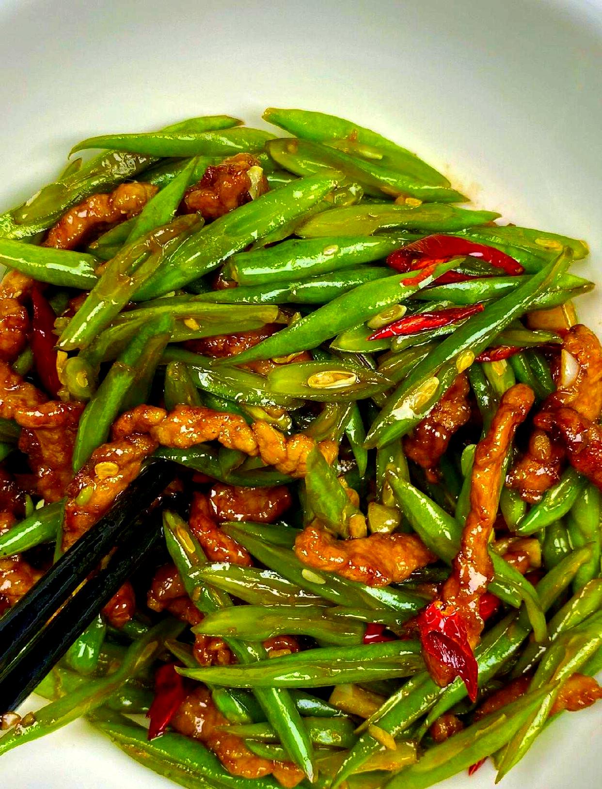 来源:网络长豆角 1 把、 蒜 3 瓣、 小米辣(可选)、 生抽、蚝油、盐、少许糖做法步骤豆角洗净掰成长段,别切,掰的更入味! 锅里多倒点油,油热下豆角,中小火慢慢煎到表皮起皱、微微焦黄,盛出来备用。 留底油,爆香蒜末和小米辣,香味直接飘出来~ 倒回豆角,加 1 勺生抽、半勺蚝油、少许盐和一丢丢糖提鲜。 大火快速翻炒均匀,全程 1 分钟就够,出锅!【豆角炒肉】