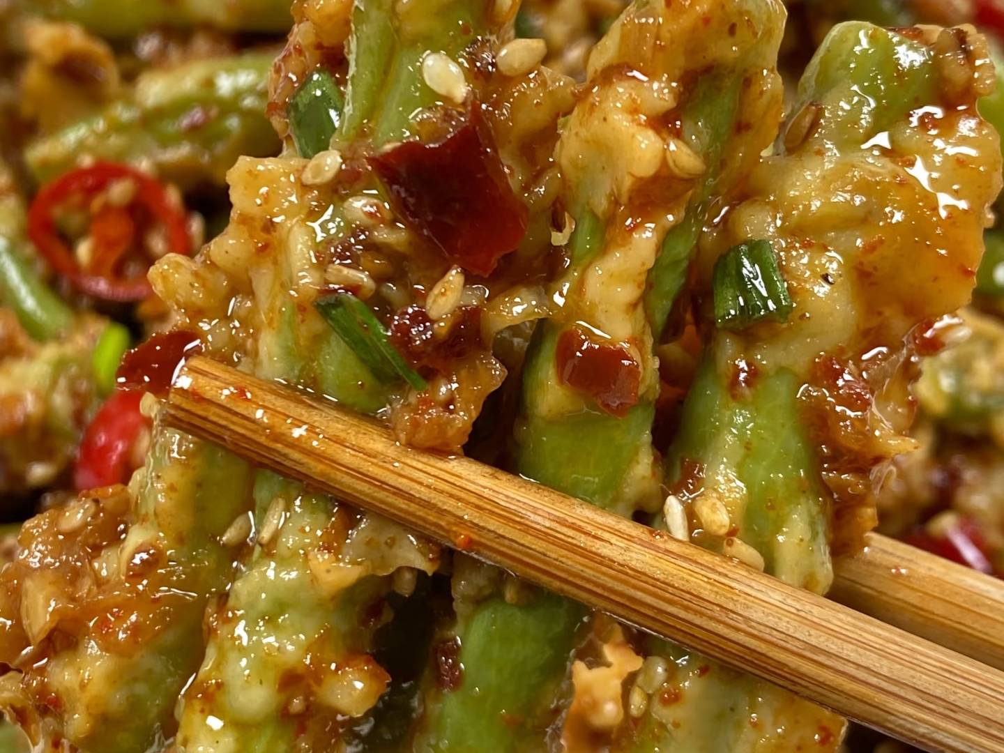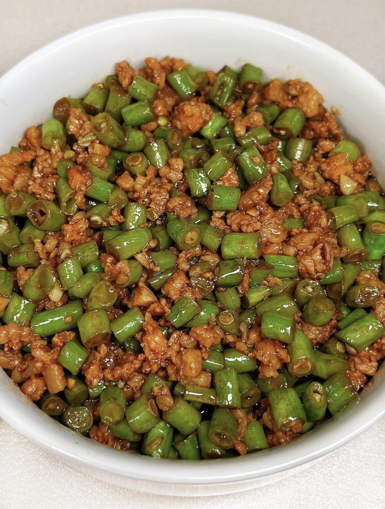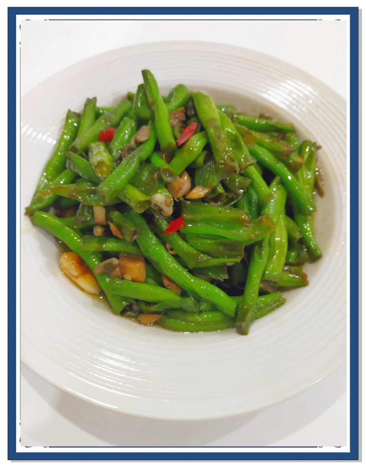 来源:网络长豆角 1 把、 蒜 3 瓣、 小米辣(可选)、 生抽、蚝油、盐、少许糖做法步骤豆角洗净掰成长段,别切,掰的更入味! 锅里多倒点油,油热下豆角,中小火慢慢煎到表皮起皱、微微焦黄,盛出来备用。 留底油,爆香蒜末和小米辣,香味直接飘出来~ 倒回豆角,加 1 勺生抽、半勺蚝油、少许盐和一丢丢糖提鲜。 大火快速翻炒均匀,全程 1 分钟就够,出锅!【豆角炒肉】