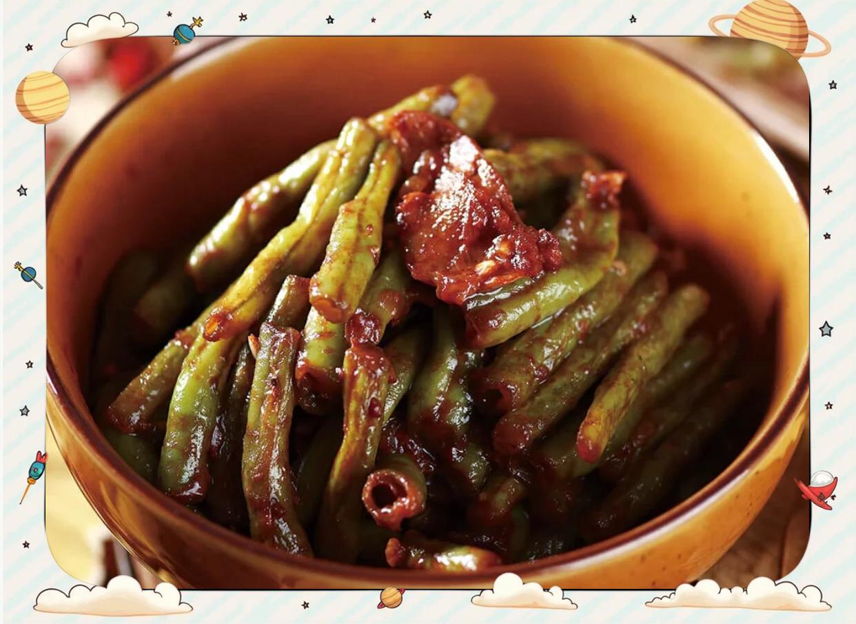 来源:三味斋菜谱(百度智能体)主料:五花肉2两(建议选用‘下五花’,肥瘦比例四六开为佳),豆角(如白豆角、东北油豆角、白芸豆等)若干,也可使用干豆角辅料:干辣椒2个,大蒜2粒,姜2,八角2粒,桂皮2小片、土豆(可选)调料:油,盐,酱油,白糖或冰糖(用于炒糖色),鸡精制作方法烹饪步骤1、选材与预处理:五花肉宜选用肥瘦相间的“下五花”或“三层肉”,并可先进行焯水或浸泡处理以去除腥味 [5] [7]。豆角宜选新鲜品种,干豆角需提前泡软 [10]。五花肉切小块、豆角撕筋掰段 [3] [5]。2、炒糖色与煸肉:锅中放油,加入冰糖或白糖炒至深琥珀色糖色,放入五花肉块翻炒上色 [1-3] [5] [7-8]。可继续煎炒至表面微黄,逼出部分油脂 [5] [9]。3、调味翻炒:加入葱段、姜片等炒香 [5-6],再加入老抽、生抽等酱油类调料翻炒上色 [5] [7]。注意此时可先不加盐或仅加少量酱油调味 [7]。4、炖煮:将豆角及可选配菜如土豆加入锅中翻炒均匀 [3] [5],根据口味补充盐等调味料 [7]。加入足量开水,水量以稍稍淹没食材为宜。大火烧开后转为中小火焖炖,炖煮时间需保证豆角完全熟透,通常需要15分钟至45分钟不等 [3] [5] [7-8]。5、收汁与出锅:待食材炖至软烂后,开大火收浓汤汁,收汁程度可调整 [5] [8]。出锅前可尝味,根据需要决定是否补充少许鸡精或味精 [3]。6、装盘上桌【干煸豆角】