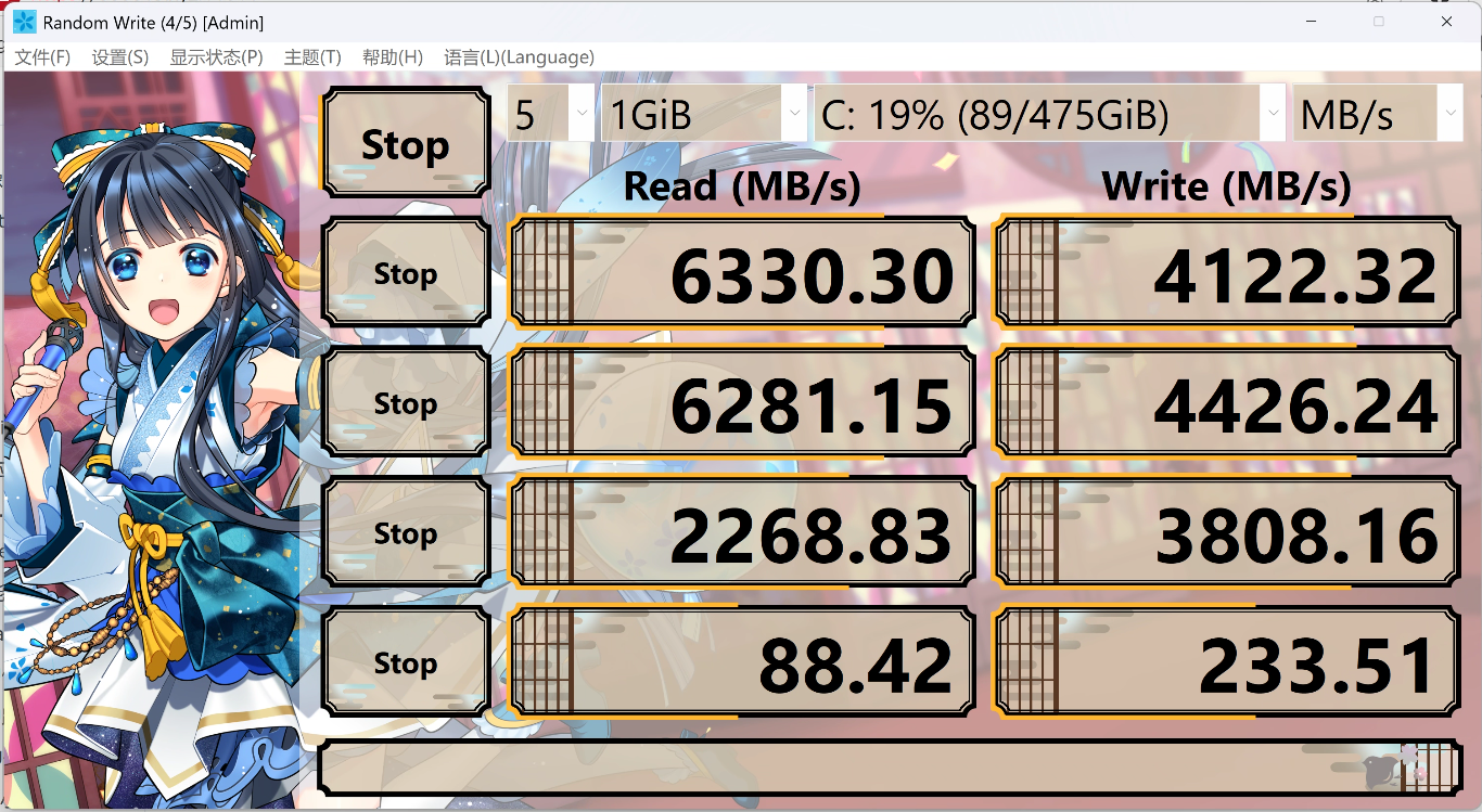 ▼使用CrystalDiskMark进行测试,顺序读取速度6330MB/s,顺序写入速度为4122MB/s,4K读取速度为88.42MB/s,写入速度为233.51MB/s,完全能够保障办公场景下对于高速读写的需求。