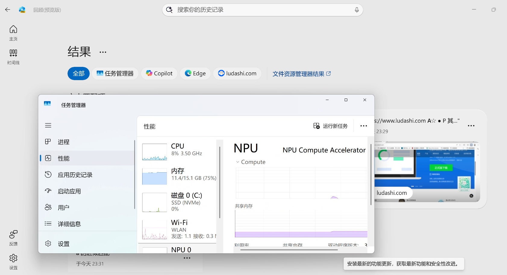 在任务管理器中,我们也能够看到NPU的使用率有波动!我第一次如此切实感受NPU的用处,NPU在进行离线文件处理的时候是实实在在工作的。