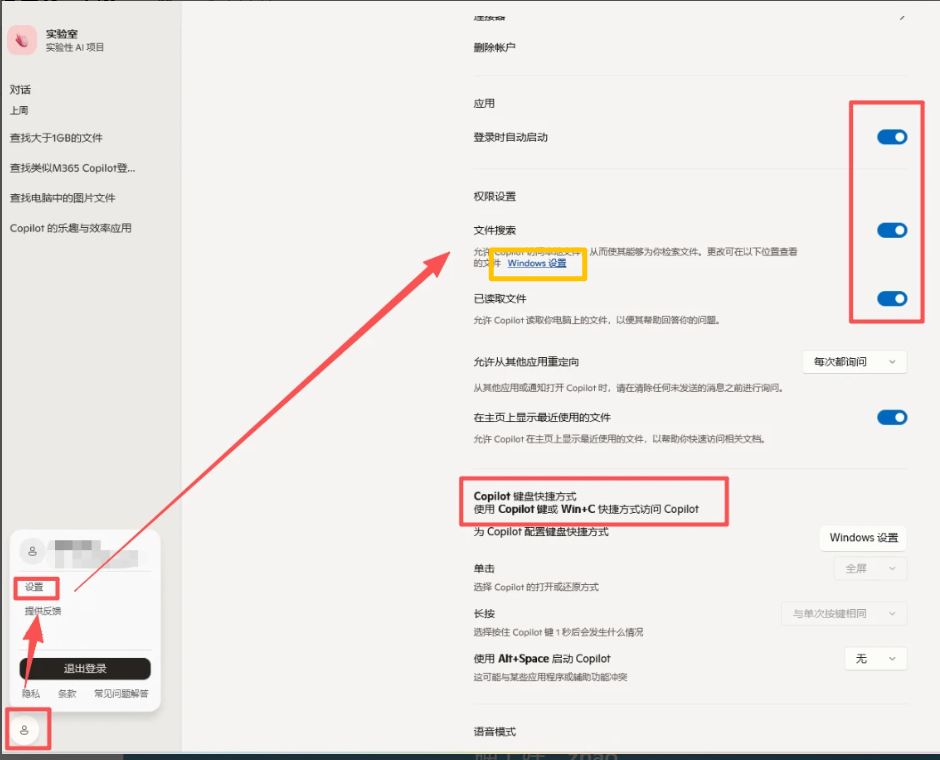 ▼首先按照图中的路径进入到设置,开启文件搜索功能,这里我们看到Copilot的键盘快捷方式是Win+C,也能看出来微软是希望PC厂商能够给到Copilot快捷键的,我向PN54也许就是微软和华硕一拍即合的一款产品吧。另外要注意,Copilot的可访问文件范围也可以自行设置。
